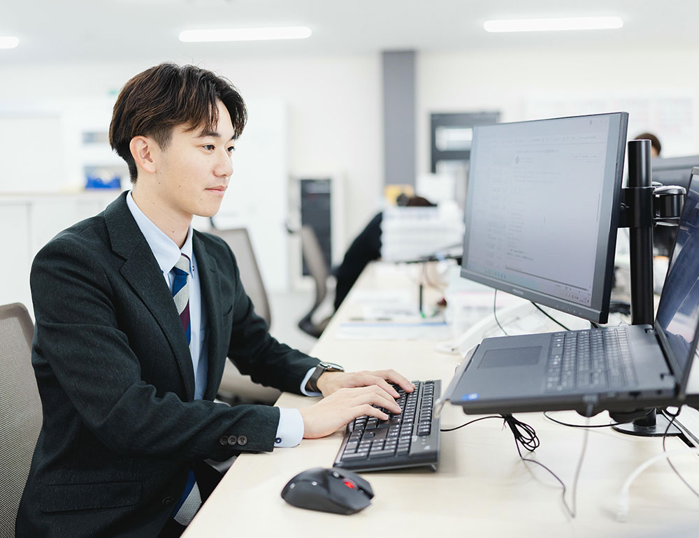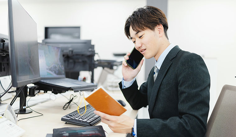 帰社後は、訪問先で相談を受けた更新製品の確認対応や、そのほか見積書・注文書・報告書・依頼書などデスクワークを行います。
