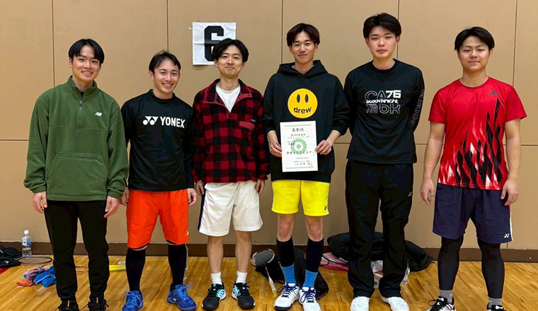 定時後は、バトミントンの練習へ!社員でチームを結成して活動しています。写真は7部リーグへ昇格したときの記念ショット。1部リーグ昇格を最終目標に、楽しみながら取り組んでいます。