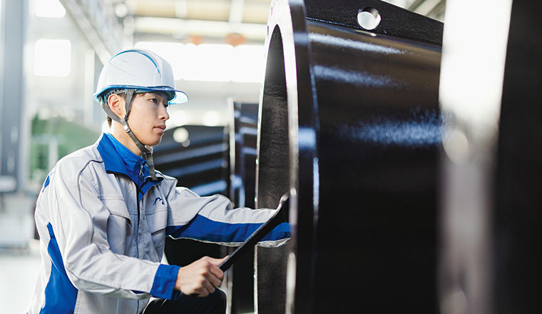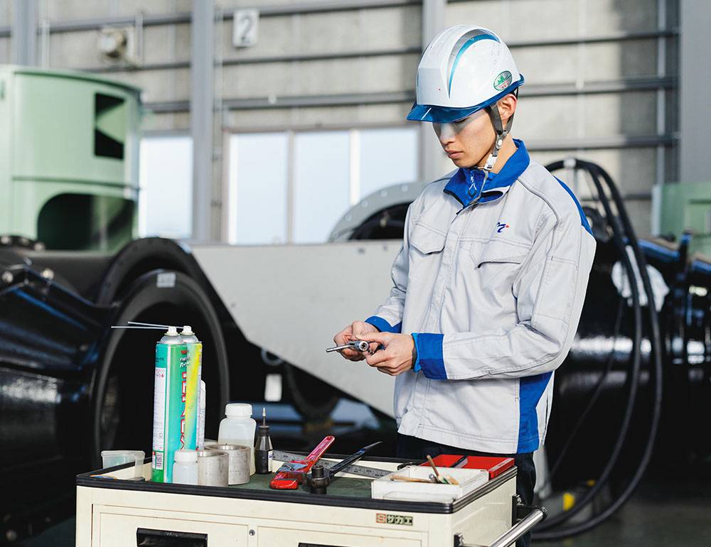 ゲートを昇降させるための開閉機組立工程は、組み立てから性能試験まで行います。