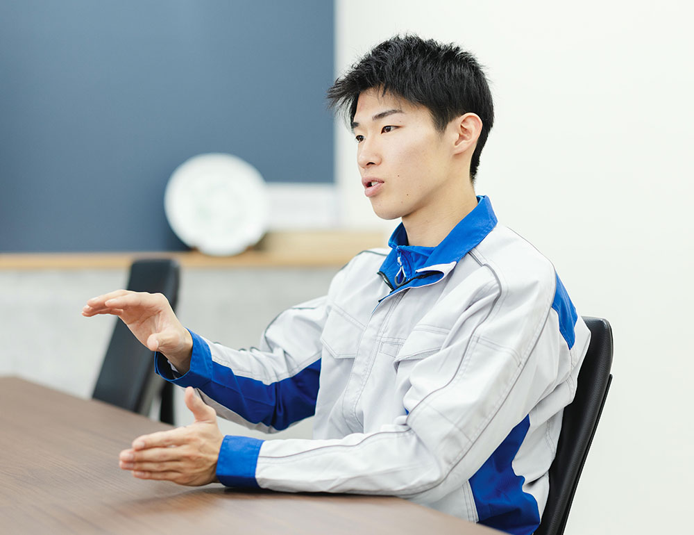ミゾタを選んだ理由は?商業高校のサッカー部に所属していましたが、お世話になった先輩の多くがミゾタに入社していて、どんな会社だろうと興味がわいたのがきっかけです。 |