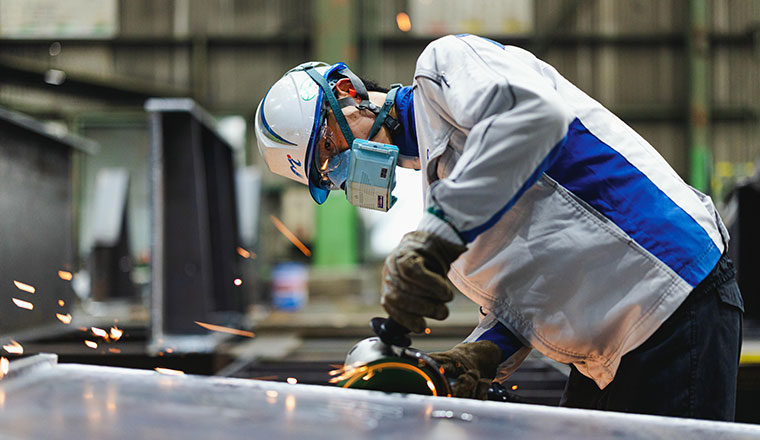 製缶作業は、図面をもとに、けがきを行い、点溶接・本溶接などを行います。1枚の鋼板が形になるのは面白いです。