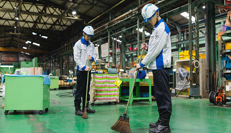全員で機械周辺の掃除・工具の片付けなど5S活動を行って退社します。