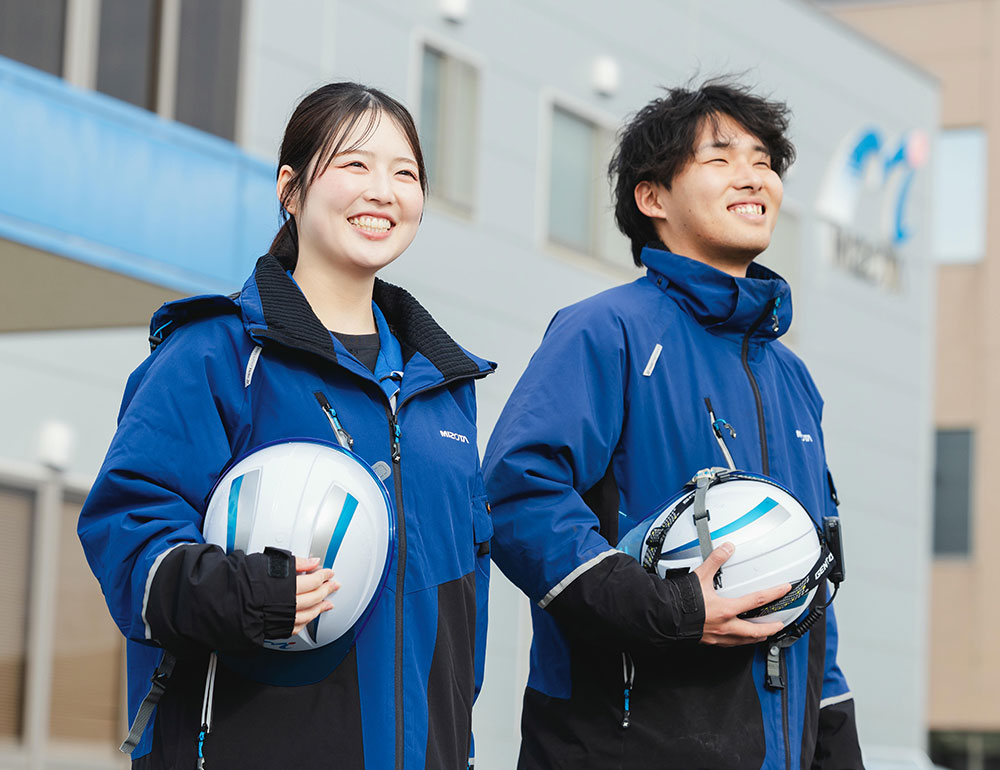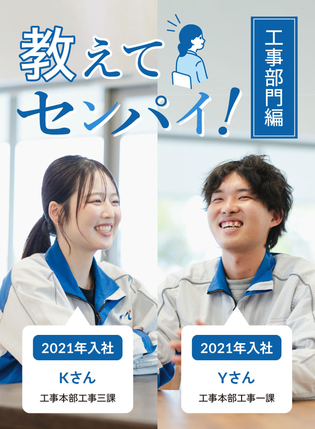 仕事をする上で心掛けていることは?一歩先のことを考えて動くことです。現場の作業が効率的かつスムーズに進むように、全体の流れを考えて調整していますが、ギリギリに行動すると焦ってミスが起こる可能性があります。書類1枚の準備にしても、心に余裕を持って取り掛かるようにしています。自分が主になって現場を進めるので、考えた工程通りに進められたら達成感があるし、「もっとこうしたらいいかも」と考えるのも面白いです。 |