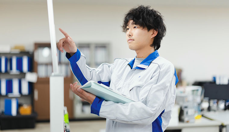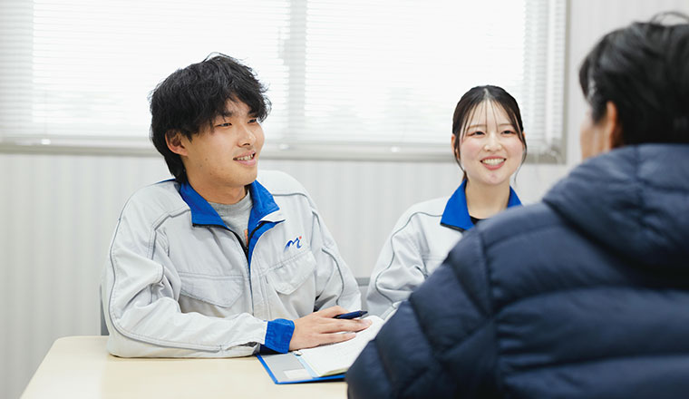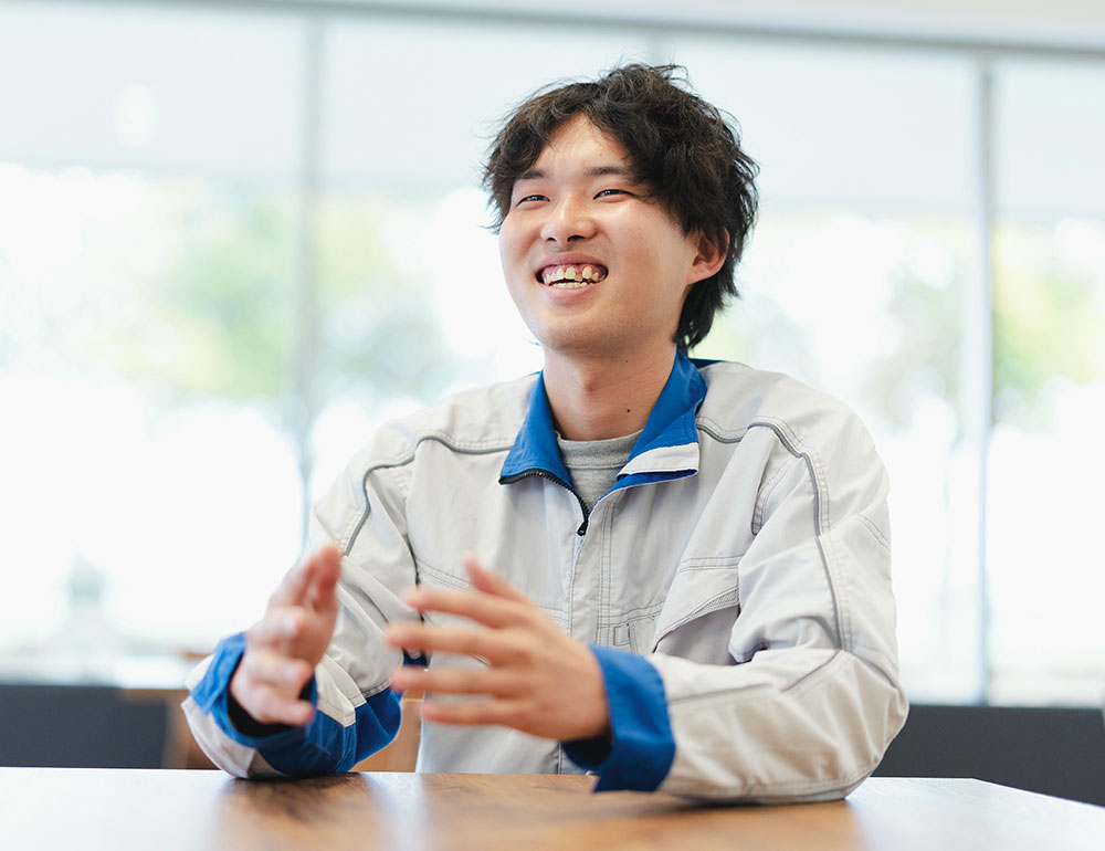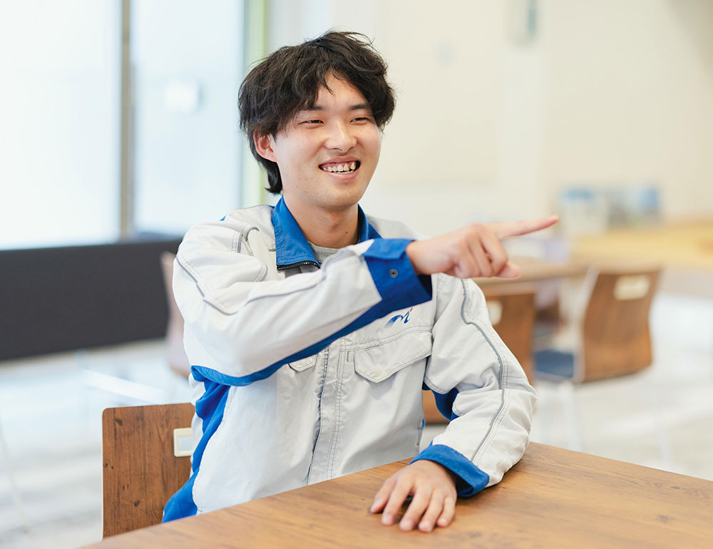 ミゾタを選んだ理由は?商業高校でしたが、ものづくりに興味があり、さまざまな企業を調べていくなかでミゾタのことを知りました。生まれも育ちも佐賀で、できれば佐賀に貢献できる仕事に就きたいという想いからミゾタを選びました。 |